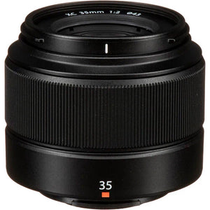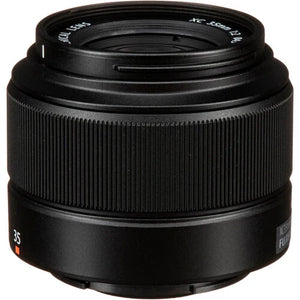 The FUJIFILM XC 35mm f/2 is a 53mm-equivalent lens offering a natural, normal-length field of view with an especially portable design. The lens incorporates aspherical elements to reduce spherical aberrations and distortion to achieve high sharpness and accurate rendering. A stepping motor autofocus system promotes quick, quiet, and accurate focusing performance and the rounded nine-blade diaphragm contributes a pleasing bokeh. The prime normal-length lens is designed for APS-C-format FUJIFILM X-mount mirrorless cameras and provides a 53mm equivalent focal length. Two aspherical elements limit distortion and spherical aberration to realize greater sharpness and accurate rendering. It also uses an internal focusing design to maintain the overall length of the lens during use and to promote a quicker focusing response.